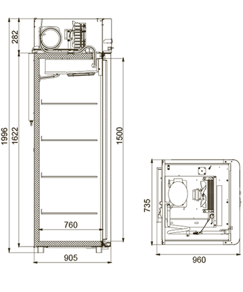 Каталог оборудования Холодильное оборудованиеШкафы холодильныеШкафы морозильные низкотемпературные до -18 °СШкаф морозильный Polair CB107-Sm Alu Шкаф морозильный Polair CB107-Sm Alu Код товара: 062-592 Поделиться: WhatsAppTelegram СравнитьДобавить в КПВ избранное 0 151 662 ₽ В корзину 0 шт Под заказСамовывоз сегодня бесплатно Взять в кредит Купить в лизинг Получить консультацию в WhatsApp Описание Характеристики Отзывы 0 Инструкции 4 Шкаф морозильный Polair CB107-Sm Alu предназначен для демонстрации и надежного хранения продуктов на предприятиях общественного питания и торговли. Цельнозаливной корпус выполнен из стали с полимерным покрытием и дополнен алюминиевыми профилями, что обеспечивает высокую механическую прочность и долговечность конструкции. Алюминиевые элементы дверей и верхней панели подчеркивают современный и премиальный дизайн. Шкаф стабильно работает при температуре окружающей среды до +40 °С и относительной влажности воздуха до 80%, сохраняя продукты в оптимальных условиях. Основные особенности: Электронный блок управления с жидкокристаллическим дисплеем Верхнее расположение агрегата, обеспечивающее удобный доступ к внутреннему объему Клапан Шредера для обслуживания системы охлаждения Компенсационный клапан с ПЭНом обогрева для предотвращения перепадов давления ПЭН обогрева трубки слива конденсата и ПЭН обогрева дверного проема для защиты от наледи Распашной тип дверей с возможностью изменения стороны открывания Интегрированные ручки, встроенные в алюминиевые профили дверей Эластичные уплотнители с магнитными вставками, обеспечивающие максимальную герметизацию Встроенная внутренняя подсветка для удобного обзора содержимого Микропереключатель, отключающий вентилятор и включающий подсветку при открытии двери Регулируемые по высоте ножки и педаль для открывания двери, повышающие эргономику использования Замок для безопасного хранения продукции 4 полки формата GN 2/1 (530×650 мм) с допустимой нагрузкой до 40 кг Толщина теплоизоляции корпуса — 61 мм Изображение товара, представленного на фото, может отличаться от его фактического вида. Показать все Габаритные размеры735×945×1996 ммДиапазон рабочей температурыдо -18 °CДлина735 ммГлубина450 ммВысота1996 ммОбъём700 лМатериал корпусаНержавеющая сталь Тип управленияМеханическое Расход электроэнергии в сутки12 кВтКоличество полок2 штКоличество дверей1 штЗамокЕсть Тип двериМеталлическая Способ открыванияРаздвижные (купе) Напряжение220 ВХладагентR290 Расположение агрегатаНижнее Габариты в упаковке850×988×2160 ммВес нетто128 кгВес брутто152 кгБрендPolair Оставить отзыв Еще никто не оставил отзыв на этот товар Схема POLAIR CB107-Sm.jpgИнструкция на POLAIR CB107-Sm.pdfСертификат соответствия.pdfДекларация о соответствии.pdf Похожие товары Перейти в каталог В наличии 79 694 ₽ Шкаф морозильный с глухой дверью TEFCOLD UF200 В наличии 746 457 ₽ Шкаф морозильный со стеклом TEFCOLD UFSC1600GCP трехдверный Под заказ 127 794 ₽ Шкаф морозильный Ангара 700 М Под заказ 207 231 ₽ Шкаф морозильный Abat ШХн-1,4 Под заказ 143 201 ₽ Шкаф морозильный МХМ Капри 1,12НВ Под заказ 189 702 ₽ Шкаф морозильный Kayman К1500-М Под заказ 122 225 ₽ Шкаф морозильный Полюс Carboma F560 В наличии 294 168 ₽ Шкаф морозильный Tatra TRC1400 BT С этим товаром покупают Под заказ 170 103 ₽ Витрина холодильная среднетемпературная Premier Куба-УВ (+1…+8) Под заказ 98 629 ₽ Витрина холодильная Carboma GC75 SV 1,2-1 фронт паттерн Под заказ 119 029 ₽ Ви