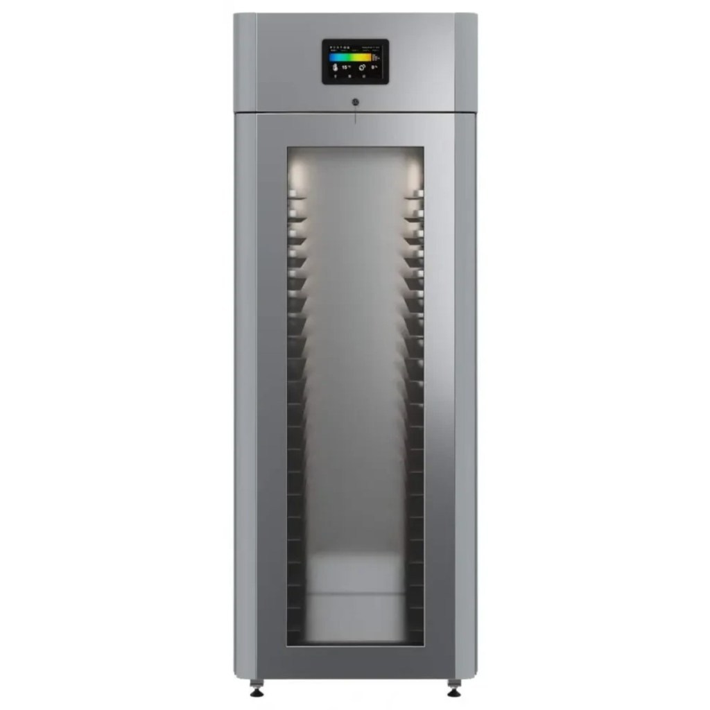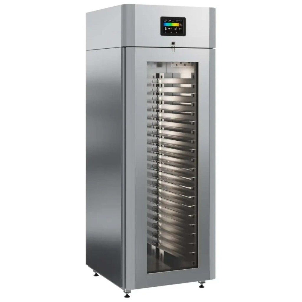 Каталог оборудования Холодильное оборудованиеШкафы холодильныеСпециализированные холодильные шкафыШкаф холодильный для хлебопекарных производств Polair CS107-Bakery Br со стеклом (Тип 1) Шкаф холодильный для хлебопекарных производств Polair CS107-Bakery Br со стеклом (Тип 1) Код товара: 062-622 Поделиться: WhatsAppTelegram СравнитьДобавить в КПВ избранное 0 414 545 ₽ В корзину 0 шт Под заказСамовывоз сегодня бесплатно Взять в кредит Купить в лизинг Получить консультацию в WhatsApp Описание Характеристики Отзывы 0 Инструкции 5 Шкаф холодильный для хлебопекарных производств Polair CS107-Bakery Br со стеклом (Тип 1) предназначен для создания оптимальных условий хранения и расстойки заготовок из теста на предприятиях общественного питания и торговли. Цельнозаливной корпус выполнен из нержавеющей стали, дверь — стеклопакет. Оборудование стабильно работает при температуре окружающей среды до +40 °C. В комплект входят 20 пар направляющих размером 400×600 мм. Особенности: Широкий функционал: охлаждение, замедление ферментации, хранение, регенерация, брожение и расстойка Динамическое охлаждение с мягким обдувом без заветривания и автоматическая оттайка с системой испарения конденсата Панель управления с 5" дисплеем: контроль температуры, влажности (регулируется от 60 до 95 %), скорости вентилятора и времени, а также возможность создания и сохранения программ Встроенный ультразвуковой увлажнитель (необходима система водоочистки и канализация) Эргономичная конструкция: верхнее расположение агрегата, распашная дверь со стеклопакетом, механизм самозакрывания, педаль для открытия, съёмные направляющие и легко заменяемый уплотнитель с магнитной вставкой Дополнительная защита: пластиковый бордюр по периметру камеры для предотвращения повреждений от тележек Простота ухода: штампованное углубление в дне корпуса для сбора загрязнений Экологичный хладагент R290 и энергоэффективность: потребляемая мощность — 0,55 кВт (охлаждение), 0,9 кВт (нагрев) Толщина стенки корпуса — 43 мм Polair CS107-Bakery Br со стеклом (Тип 1) — надёжный и многофункциональный шкаф, который обеспечивает полное управление процессами брожения и расстойки теста. Современная система охлаждения и увлажнения, продуманная конструкция и удобное управление делают его оптимальным решением для пекарен и кондитерских, стремящихся к стабильному качеству и высокой производительности.Изображение товара, представленного на фото, может отличаться от его фактического вида. Показать все Габаритные размеры697×1005×1960 ммДиапазон рабочей температурыот -10 до +40 °CДлина697 ммШирина1005 ммВысота1960 ммОбъём700 лКол-во дверей1 Тип двериСтеклянная Уровень влажностиот 60 до 95 %Направляющие под EN 40*6020 Расстояние между направляющими60 ммХолодильный агрегатВстроенный Тип оттайкиАвтоматическая Тип охлажденияДинамический ПодсветкаЕсть ХладагентR290 Вес нетто180 кгБрендPolairВсе специализированные холодильные шкафы Из нержавейки Оставить отзыв Еще никто не оставил отзыв на этот товар Схема POLAIR CS107 Bakery Br.jpgИнструкция на POLAIR CS107 Bakery Br.pdfБрошюра на хлебопекарное оборудование POLAIR.pdfДекларация о соответствии.pdfСертификат соответствия.pdf Похожие товары Перейти в каталог Под заказ 389 300 ₽ Шкаф холодильный для вызревания сыра Polair CS107 Cheese черный, со стеклом Под заказ 397 800 ₽ Шкаф холодильный для вызревания сыра Polair CS107 Cheese полки нерж., со стеклом Под заказ 392 700 ₽ Шкаф х