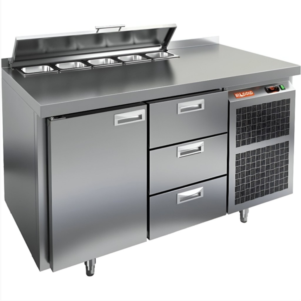 Каталог оборудования Холодильное оборудованиеСтолы охлаждаемыеСтолы холодильные для салатовСтол холодильный для салатов HiCold SL1-13GN (1/3) с крышкой Стол холодильный для салатов HiCold SL1-13GN (1/3) с крышкой Код товара: 064-852 Поделиться: WhatsAppTelegram СравнитьДобавить в КПВ избранное 0 189 622 ₽ В корзину 0 шт Под заказСамовывоз сегодня бесплатно Взять в кредит Купить в лизинг Получить консультацию в WhatsApp Описание Характеристики Отзывы 0 Стол холодильный для салатов HiCold SL1-13GN (1/3) с крышкой предназначен для профессиональных кухонь в общепите и торговле. Он совмещает рабочую поверхность и охлаждаемый объем, что ускоряет процесс приготовления и хранение ингредиентов. Корпус и столешница выполнены из нержавеющей стали — прочной, устойчивой к коррозии и простой в уходе. Металлическая крышка защищает продукты от загрязнений и сохраняет их свежесть. Особенности модели: Электронная панель управления — точная регулировка и стабильный температурный режим. Салат-бар на 5 гастроемкостей глубиной до 100 мм — быстрый доступ к ингредиентам. 1 глухая дверь — для хранения продуктов и тары. 2 выдвижных ящика — удобное размещение мелких или часто используемых ингредиентов. Автоматические доводчики дверей с фиксацией — комфорт при загрузке/выгрузке. Магнитные уплотнители — легко заменяются, обеспечивают герметичность и энергосбережение. Открытая агрегатная часть — простое обслуживание и доступ к компрессору. Регулируемые по высоте ножки — установка даже на неровном полу. Столешница толщиной 50 мм с бортом 50 мм — прочная рабочая поверхность и защита от загрязнений. Эффективная теплоизоляция 50 мм — сохранение холода и снижение энергозатрат. HiCold SL1-13GN (1/3) с крышкой — надежный салатный стол для удобной организации рабочего места и сохранения свежести продуктов на профессиональной кухне.Изображение товара, представленного на фото, может отличаться от его фактического вида. Показать все Габаритные размеры1390×700×850 ммДиапазон рабочей температурыот +2 до +10 °CРасположение агрегатаБоковое Материал столешницыНержавеющая Тип столаС дверьми и ящиками Тип двериГлухая Объём350 лКоличество дверей1 штТип гастроемкостейGN 1/3 Количество ящиков3 штРазмер полки530×325 ммНапряжение220 ВМощность0,22 кВтТип охлажденияДинамическое Тип оттайкиАвтоматическая СтолешницаС бортом Габариты в упаковке1550×850×1000 ммВес нетто105 кгВес брутто148 кгБрендHicold Оставить отзыв Еще никто не оставил отзыв на этот товар Ранее просмотрено Под заказ 214 192 ₽ Стол холодильный для салатов HiCold SL1-113GN (1/3) с крышкой