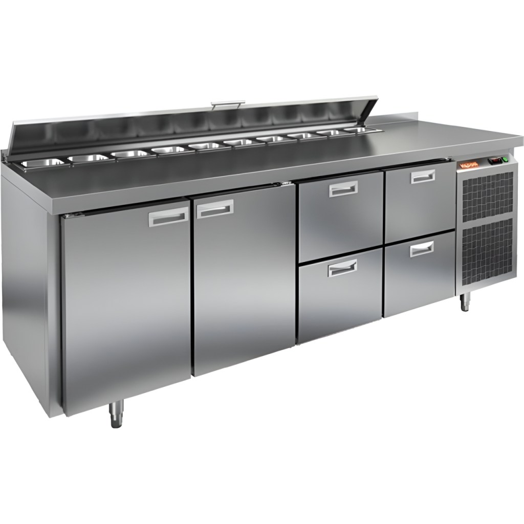 Каталог оборудования Холодильное оборудованиеСтолы охлаждаемыеСтолы холодильные для салатовСтол холодильный для салатов HiCold SL1-332GN (1/3) с крышкой Стол холодильный для салатов HiCold SL1-332GN (1/3) с крышкой Код товара: 064-851 Поделиться: WhatsAppTelegram СравнитьДобавить в КПВ избранное 0 290 692 ₽ В корзину 0 шт Под заказСамовывоз сегодня бесплатно Взять в кредит Купить в лизинг Получить консультацию в WhatsApp Описание Характеристики Отзывы 0 Инструкции 1 Стол холодильный для салатов HiCold SL1-332GN (1/3) предназначен для использования на предприятиях общественного питания и торговли. Он объединяет рабочую поверхность и охлаждаемый отсек, что делает его удобным решением для хранения, охлаждения и подготовки ингредиентов при приготовлении салатов, пиццы и других блюд. Такая конструкция позволяет повару работать быстрее и эффективнее, так как все необходимые продукты находятся под рукой. Корпус и столешница выполнены из прочной нержавеющей стали, устойчивой к коррозии и легко поддающейся санитарной обработке. Металлическая крышка защищает продукты от загрязнений и сохраняет их свежесть. Особенности модели: Электронная панель управления — точная настройка температурного режима. 8 выдвижных ящика — быстрое размещение и замена продуктов. Вместимость салат-бара — до 8 гастроемкостей глубиной до 100 мм. Автоматические доводчики — комфорт при загрузке/выгрузке. Легкозаменяемые магнитные уплотнители — надежная герметичность. Открытая агрегатная часть — быстрый доступ для обслуживания. Регулируемые по высоте ножки — устойчивость даже на неровном полу. Толщина столешницы, борта и теплоизоляции — 50 мм, что обеспечивает прочность и энергоэффективность конструкции. HiCold SL1-332GN (1/3) — практичное и удобное решение для профессиональной кухни, обеспечивающее удобную подготовку и хранение ингредиентов.Изображение товара, представленного на фото, может отличаться от его фактического вида. Показать все Габаритные размеры1835×700×850 ммДиапазон рабочей температурыот +2 до +10 °CРасположение агрегатаБоковое Материал столешницыНержавеющая Тип столаС дверьми и ящиками Тип двериГлухая Объём505 лКоличество дверей2 штТип гастроемкостейGN 1/3 Количество ящиков6 штРазмер полки530×325 ммНапряжение220 ВМощность0,46 кВтТип охлажденияДинамическое Тип оттайкиАвтоматическая СтолешницаС бортом Габариты в упаковке2000×850×1000 ммВес нетто120 кгВес брутто140 кгБрендHicold Оставить отзыв Еще никто не оставил отзыв на этот товар Декларация о соответствии.pdf Ранее просмотрено Под заказ 168 382 ₽ Стол холодильный для салатов HiCold SLE2-1111GN (1/6) О без крышки Под заказ 239 032 ₽ Стол холодильный для салатов HiCold SLE2-222GN (1/6) О с крышкой Под заказ 165 772 ₽ Стол холодильный для салатов HiCold SL2-11GN (1/6) М с крышкой