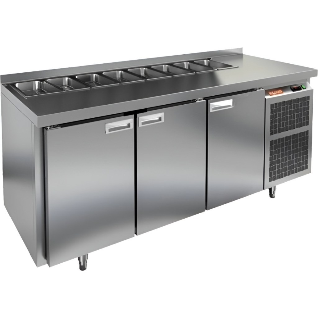 Каталог оборудования Холодильное оборудованиеСтолы охлаждаемыеСтолы холодильные для салатовСтол холодильный для салатов HiCold SL2-111SN (1/6) без крышки Стол холодильный для салатов HiCold SL2-111SN (1/6) без крышки Код товара: 064-807 Поделиться: WhatsAppTelegram СравнитьДобавить в КПВ избранное 0 163 612 ₽ В корзину 0 шт Под заказСамовывоз сегодня бесплатно Взять в кредит Купить в лизинг Получить консультацию в WhatsApp Описание Характеристики Отзывы 0 Инструкции 2 Стол холодильный для салатов HiCold SL2-111SN (1/6) без крышки применяется на предприятиях общественного питания и торговли для хранения ингредиентов, используемых при приготовлении салатов, пиццы и других блюд. Совмещает рабочую поверхность и охлаждаемый отсек, что упрощает работу персонала. Корпус и столешница выполнены из прочной и гигиеничной нержавеющей стали. Столешница с бортом предотвращает скатывание и проливание ингредиентов, обеспечивая аккуратность рабочего пространства. Важно: на фото представлена аналогичная модель с крышкой. Особенности: Электронная панель управления — точная настройка температуры и режимов. 3 полки формата GN 1/1 — вместительное внутреннее хранение. Салат-бар на 8 гастроемкостей — удобная организация ингредиентов. Автоматические доводчики дверей — комфортная эксплуатация. Съёмные магнитные уплотнители — простота замены и герметичность. Открытая агрегатная часть — лёгкий доступ к оборудованию. Регулируемые ножки — установка на любом покрытии. Гастроемкости до 100 мм глубиной, столешница и бортик — по 50 мм, теплоизоляция — 50 мм. HiCold SL2-111SN без крышки — удобный, вместительный и надёжный стол для профессиональной кухни. Идеален для быстрого доступа к охлаждённым ингредиентам в процессе приготовления.Изображение товара, представленного на фото, может отличаться от его фактического вида. Показать все Габаритные размеры1835×600×850 ммДиапазон рабочей температурыот +2 до +10 °CРасположение агрегатаБоковое Материал столешницыНержавеющая Тип столаС дверьми Тип двериГлухая Объём435 лКоличество дверей3 штТип гастроемкостейGN 1/6 Размер полки430×325 ммНапряжение220 ВМощность0,46 кВтТип охлажденияДинамическое Тип оттайкиАвтоматическая СтолешницаС бортом Вес нетто120 кгВес брутто184 кгБрендHicold Оставить отзыв Еще никто не оставил отзыв на этот товар Паспорт на HICOLD SL2-111SN.pdfДекларация о соответствии.pdf Ранее просмотрено Под заказ 164 061 ₽ Стол холодильный для салатов HiCold SL2-111GN (1/6) без крышки Под заказ 118 162 ₽ Стол холодильный для салатов HiCold SLE3-11GN О без крышки