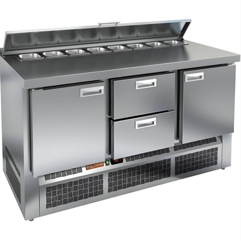 Каталог оборудования Холодильное оборудованиеСтолы охлаждаемыеСтолы холодильные для салатовСтол холодильный для салатов HiCold SLE1-121GN (1/3) М с крышкой Стол холодильный для салатов HiCold SLE1-121GN (1/3) М с крышкой Код товара: 064-918 Поделиться: WhatsAppTelegram СравнитьДобавить в КПВ избранное 0 200 691 ₽ В корзину 0 шт Под заказСамовывоз сегодня бесплатно Взять в кредит Купить в лизинг Получить консультацию в WhatsApp Описание Характеристики Отзывы 0 Инструкции 1 Стол холодильный для салатов HiCold SLE1-121GN (1/3) М с крышкой предназначен для использования на предприятиях общественного питания и торговли. Он служит для хранения и обработки ингредиентов, используемых при приготовлении салатов, пиццы, закусок и других блюд. Также стол подходит для охлаждения и кратковременного хранения скоропортящихся продуктов и напитков. Модель сочетает в себе прочную рабочую поверхность и охлаждаемый внутренний объем, что упрощает процесс приготовления: все необходимые ингредиенты всегда под рукой. Корпус и столешница изготовлены из нержавеющей стали, устойчивой к воздействию влаги, механическим повреждениям и легко поддающейся очистке. Металлическая крышка защищает продукты от загрязнений и сохраняет их свежесть. Особенности: Электронная панель управления — обеспечивает точное и удобное регулирование температуры внутри камеры. 3 глухие дверцы с автоматическими доводчиками и фиксацией — повышает удобство использования, особенно при загрузке и выгрузке продуктов. Салат-бар вмещает 8 гастроемкостей — обеспечивает быстрый доступ к разнообразным ингредиентам. Автоматические доводчики дверей с фиксатором — улучшают эргономику и предотвращают случайное захлопывание. Магнитные уплотнители — легко заменяются и обеспечивают хорошую теплоизоляцию. Открытая агрегатная часть — облегчает доступ к элементам системы охлаждения для технического обслуживания. Модификация “М” — замена ножек на колёса (2 со стопором, 2 без стопора) для мобильности стола. Максимальная глубина гастроемкостей — 100 мм — подходит для хранения различных типов продуктов. Толщина столешницы — 50 мм — обеспечивает надежность и устойчивость при работе. Высота борта — 50 мм — защищает от проливания и загрязнений. Теплоизоляция толщиной 50 мм — способствует поддержанию стабильной температуры и экономии энергии. HiCold SLE1-121GN (1/3) М с крышкой — это практичное и многофункциональное решение для профессиональной кухни. Благодаря вместительности, продуманной конструкции и надежной термоизоляции, стол позволяет организовать эффективное рабочее пространство и обеспечивает сохранность свежести продуктов в течение всего рабочего дня. Изображение товара, представленного на фото, может отличаться от его фактического вида. Показать все Габаритные размеры1485×700×850 ммДиапазон рабочей температурыот +2 до +10 °CРасположение агрегатаНижнее Материал столешницыНержавеющая Тип столаС дверьми Тип двериГлухая Объём375 лКоличество дверей3 штТип гастроемкостейGN 1/3 Размер полки530×325 ммНапряжение220 ВМощность0,2 кВтТип охлажденияДинамическое Тип оттайкиАвтоматическая СтолешницаС бортом Габариты в упаковке1700×850×1080 ммВес нетто115 кгВес брутто160 кгБрендHicold Оставить отзыв Еще никто не оставил отзыв на этот товар Декларация о соответствии.pdf Ранее просмотрено Под заказ 173 872 ₽ Стол холодильный для салатов HiCold SL2-12GN (1/6) с кр