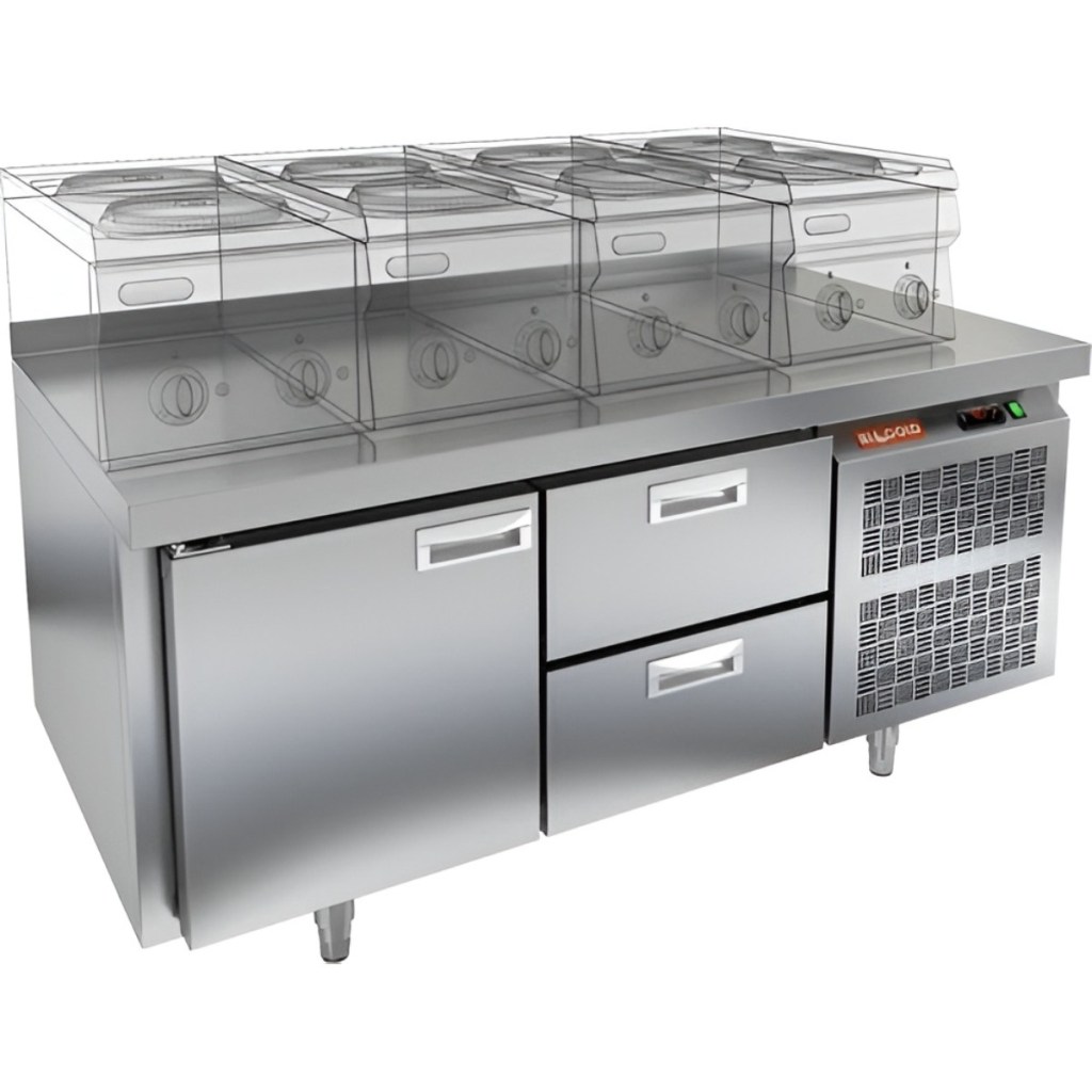 Каталог оборудования Холодильное оборудованиеСтолы охлаждаемыеСтолы холодильные под тепловое оборудованиеСтол охлаждаемый HiCold GN 12/TN LT SH О под тепловое оборудование Стол охлаждаемый HiCold GN 12/TN LT SH О под тепловое оборудование Код товара: 065-293 Поделиться: WhatsAppTelegram СравнитьДобавить в КПВ избранное 0 140 211 ₽ В корзину 0 шт Под заказСамовывоз сегодня бесплатно Взять в кредит Купить в лизинг Получить консультацию в WhatsApp Описание Характеристики Отзывы 0 Инструкции 2 Стол охлаждаемый HiCold GN 12/TN LT SH О под тепловое оборудование предназначен для обработки ингредиентов и временного хранения скоропортящихся продуктов и напитков на предприятиях общественного питания и торговли. Устройство совмещает функции рабочей поверхности и холодильной камеры. Столешница рассчитана на установку теплового оборудования: под рабочей поверхностью встроен ДСП-лист, который укрепляет конструкцию и препятствует проникновению тепла внутрь. Такое решение обеспечивает дополнительную жесткость, позволяет рационально использовать рабочее пространство и повышает эффективность работы на кухне. Внимание! На фото показан стол с бортом. Данная модель поставляется без борта. Особенности: 1 распашная дверь и 2 выдвижные секции — удобный доступ к хранимым продуктам. Автоматические доводчики дверей с фиксатором открытого положения повышают эргономику и способствуют сохранению холода. Легкозаменяемые магнитные уплотнители обеспечивают плотное прилегание дверей и лёгкость в обслуживании. Открытая агрегатная часть упрощает доступ к компрессору при техническом обслуживании. Конструкция на низких ножках обеспечивает стабильность и удобство эксплуатации. Толщина столешницы без борта — 50 мм обеспечивает прочность рабочей поверхности. Толщина теплоизоляции — 50 мм способствует энергоэффективности и стабильному температурному режиму. HiCold GN 12/TN LT SH О — это надёжное и удобное оборудование, сочетающее охлаждение и рабочее пространство. Благодаря продуманной конструкции и совместимости с гастроемкостями GN 1/1, стол станет практичным решением для кухни любого профессионального уровня.Изображение товара, представленного на фото, может отличаться от его фактического вида. Показать все Габаритные размеры1390×700×610 ммДиапазон рабочей температурыот -2 до +10 °CМатериал столешницыНержавеющая Расположение агрегатаБоковое Объём255 лТип столаС дверьми и ящиками Тип двериГлухая Количество дверей1 штКоличество ящиков2 штРазмер полки530×325 ммНапряжение220 ВМощность0,22 кВтТип охлажденияДинамический Тип оттайкиАвтоматическая СтолешницаБез борта Габариты в упаковке1550×850×850 ммВес нетто128 кгВес брутто148 кгБрендHicold Оставить отзыв Еще никто не оставил отзыв на этот товар Паспорт на HICOLD GN 12TN LT SH О.pdfДекларация о соответствии.pdf Похожие товары Перейти в каталог В наличии 77 661 ₽ Стол холодильный среднетемпературный HiCold GN 11/TN W Под заказ 125 670 ₽ Стол холодильный среднетемпературный Abat СХС-70-01 с бортом (дверь, дверь) С этим товаром покупают В наличии 201 690 ₽ Шкаф морозильный Полюс Carboma F1400 В наличии 195 030 ₽ Плита индукционная Аbat КИП-47Н