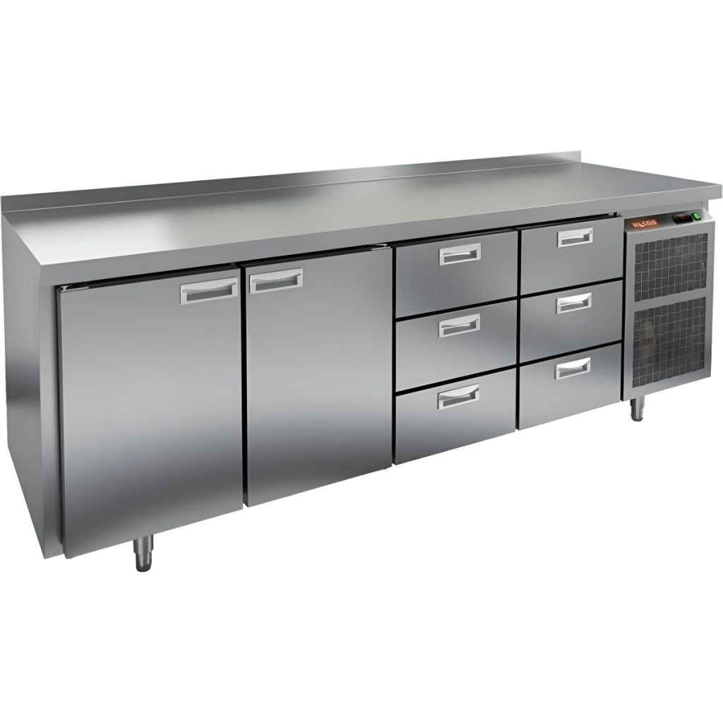 Каталог оборудования Холодильное оборудованиеСтолы охлаждаемыеСтолы холодильные среднетемпературныеСтол холодильный среднетемпературный HiCold GN 1133/TN Стол холодильный среднетемпературный HiCold GN 1133/TN Код товара: 001-334 Поделиться: WhatsAppTelegram СравнитьДобавить в КПВ избранное 0 259 192 ₽ В корзину 0 шт Под заказСамовывоз сегодня бесплатно Взять в кредит Купить в лизинг Получить консультацию в WhatsApp Описание Характеристики Отзывы 0 Инструкции 1 Стол холодильный среднетемпературный HiCold GN 1133/TN предназначен для обработки ингредиентов и кратковременного хранения скоропортящихся продуктов и напитков на предприятиях общественного питания и торговли. Модель оснащена удобной электронной панелью управления. Корпус и столешница выполнены из прочной и гигиеничной нержавеющей стали. В комплект входят 2 полки для размещения продуктов. Особенности: 2 распашные двери обеспечивают быстрый и удобный доступ к охлаждаемому отделению. 6 выдвижных секций позволяют рационально организовать внутреннее пространство и ускорить доступ к ингредиентам. Автоматические доводчики дверей с фиксатором открытого положения повышают комфорт при эксплуатации. Легкозаменяемые магнитные уплотнители обеспечивают надёжную герметичность и упрощают техническое обслуживание. Регулируемые по высоте ножки дают возможность выровнять стол на неровной поверхности. Толщина столешницы — 50 мм, что делает её устойчивой к механическим нагрузкам. Высота борта — 50 мм предотвращает скатывание продуктов и жидкостей с поверхности. Толщина теплоизоляции — 50 мм, что способствует поддержанию стабильной температуры и снижению энергозатрат. Диапазон температуры окружающего воздуха — от 12 до 37 °C, что делает модель универсальной для различных условий эксплуатации. HiCold GN 1133/TN — это практичный и надёжный холодильный стол, сочетающий удобство работы, продуманную организацию внутреннего пространства и высокую энергоэффективность. Идеально подходит для профессиональных кухонь.Изображение товара, представленного на фото, может отличаться от его фактического вида. Показать все Габаритные размеры2280×700×850 ммДиапазон рабочей температурыот -2 до +10 °CРасположение агрегатаБоковое Материал столешницыНержавеющая Тип столаС дверьми и ящиками Тип двериГлухая Объём660 лКоличество дверей2 штКоличество полок2 штКоличество ящиков6 штРазмер полки530×325 ммНапряжение220 ВМощность0,48 кВтТип охлажденияДинамический Тип оттайкиАвтоматическая СтолешницаС бортом Вес нетто212 кгВес брутто236 кгБрендHicoldВсе холодильные столы HicoldВсе нержавеющие холодильные столы Все холодильные столы с бортом Оставить отзыв Еще никто не оставил отзыв на этот товар Паспорт на HICOLD GN 1133/TN.pdf Похожие товары Перейти в каталог В наличии 139 401 ₽ Стол холодильный среднетемпературный HiCold GN 1111 BR2 TN В наличии 113 121 ₽ Стол холодильный среднетемпературный HiCold GN 1111/TN W Под заказ 148 851 ₽ Стол холодильный среднетемпературный HiCold SN 1111/TN W В наличии 139 583 ₽ Стол холодильный среднетемпературный Cooleq GN4200TN с бортом С этим товаром покупают Под заказ 203 827 ₽ Шкаф морозильный Abat ШХн-1,4 Ранее просмотрено Под заказ 195 462 ₽ Сплит-система холодильная низкотемпературная Север BGSF 220 S L4