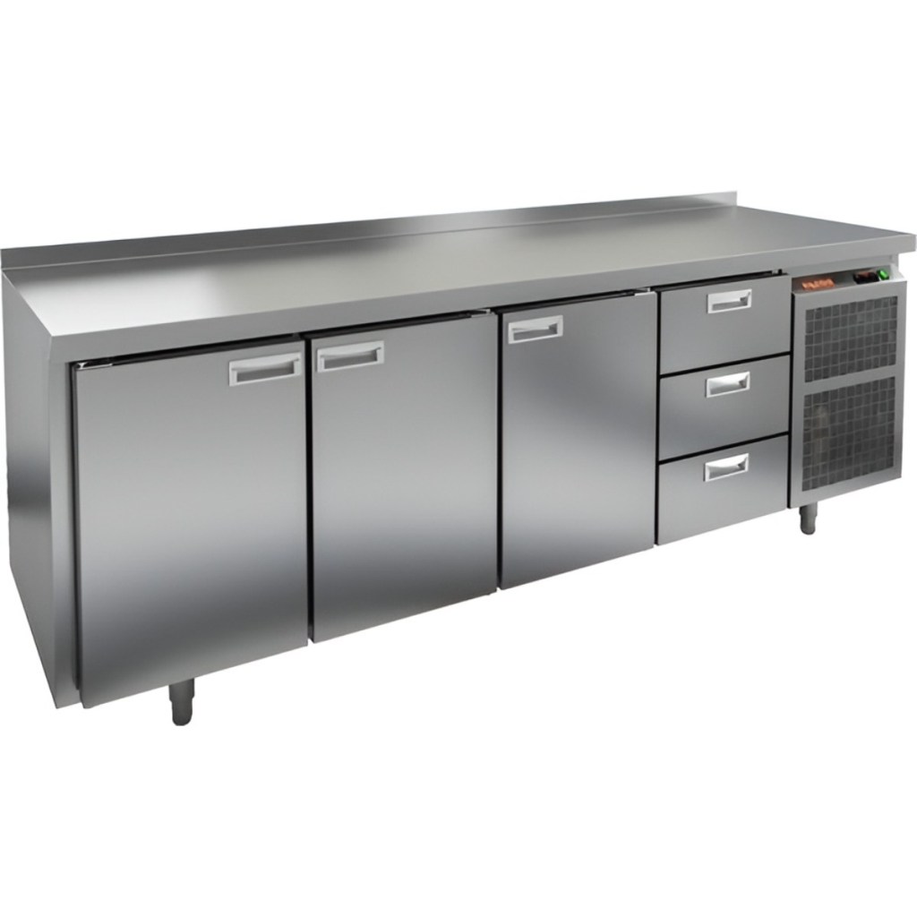 Каталог оборудования Холодильное оборудованиеСтолы охлаждаемыеСтолы морозильные низкотемпературныеСтол морозильный HiCold GN 1113/BT Стол морозильный HiCold GN 1113/BT Код товара: 062-184 Поделиться: WhatsAppTelegram СравнитьДобавить в КПВ избранное 0 252 352 ₽ В корзину 0 шт Под заказСамовывоз сегодня бесплатно Взять в кредит Купить в лизинг Получить консультацию в Max Описание Характеристики Отзывы 0 Инструкции 2 Стол морозильный HiCold GN 1113/BT — профессиональное холодильное оборудование, сочетающее удобную рабочую поверхность и вместительную морозильную камеру. Предназначен для предприятий общественного питания, где требуется качественное хранение замороженных продуктов и удобство при подготовке блюд. Основные особенности: Совместимость с профессиональным оборудованием — полки, направляющие и стойки выполнены по стандарту GN, что обеспечивает полное соответствие гастроёмкостям и кухонным системам. Прочный корпус — цельнозаливной из нержавеющей стали с 50 мм теплоизоляцией, обеспечивающей высокую герметичность и долговечность конструкции. Надёжное управление — электронный блок с несколькими режимами оттаивания для стабильной работы. Улучшенное охлаждение — вентилятор повышенной мощности и принудительная вентиляция по всему объёму камеры обеспечивают быстрое и равномерное охлаждение продуктов. Минимизация обслуживания — интеллектуальное размораживание и термическое выпаривание конденсата снижают необходимость ручного вмешательства. Экономичный компрессор — снижает энергопотребление без ущерба производительности. Удобство сервисного обслуживания — облегчённый доступ к агрегатам. Комфортное использование — двери оснащены петлями-доводчиками для плавного закрытия и предотвращения потерь холода. Защита от примерзания — проволочный электронагреватель (ПЭН), установленный по контуру корпуса. Регулировка высоты — ножки позволяют адаптировать стол к особенностям пола. Технические параметры — нагрузка на полку до 50 кг, высота борта 50 мм, температура окружающей среды от +12 до +32 °C. HiCold GN 1113/BT — это надёжный и функциональный морозильный стол, который обеспечивает высокую эффективность и удобство работы на профессиональной кухне. Его прочная конструкция, энергоэффективность и совместимость с кухонным оборудованием делают эту модель оптимальным решением для ресторанов, кафе и пищевых производств.Изображение товара, представленного на фото, может отличаться от его фактического вида. Показать все Габаритные размеры2280×700×850 ммДиапазон рабочей температурыот -18 до -10 °CРасположение агрегатаБоковое Материал столешницыНержавеющая Тип столаС дверьми и ящиками Тип двериГлухая Объём660 лКоличество дверей3 штКоличество полок3 штКоличество ящиков3 штРазмер полки530×325 ммНапряжение220 ВМощность0,75 кВтТип охлажденияДинамический Тип оттайкиАвтоматическая СтолешницаС бортом Вес нетто154 кгВес брутто169 кгБрендHicoldВсе морозильные столы HicoldВсе морозильные столы с бортом Оставить отзыв Еще никто не оставил отзыв на этот товар Паспорт на HICOLD GN 1113/BT.pdfДекларация о соответствии.pdf Ранее просмотрено Под заказ 253 612 ₽ Стол морозильный HiCold GN 122 BR2 BT Под заказ 251 901 ₽ Стол морозильный HiCold SN 1113/BT Под заказ 247 582 ₽ Стол морозильный HiCold SNE 1111/BT BOX