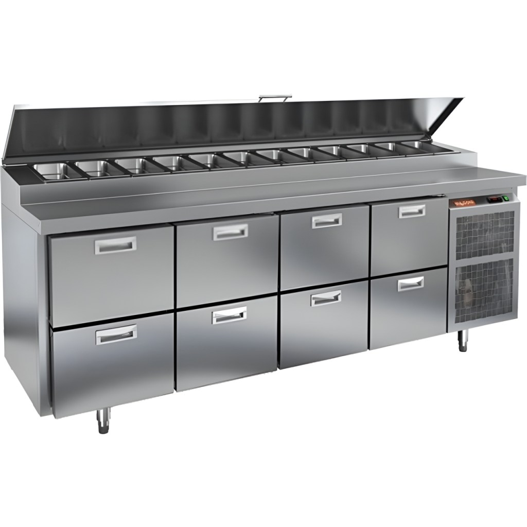 Каталог оборудования Холодильное оборудованиеСтолы охлаждаемыеСтолы холодильные для пиццыСтол холодильный для пиццы HiCold PZ1-2222GN (1/3H) Стол холодильный для пиццы HiCold PZ1-2222GN (1/3H) Код товара: 064-713 Поделиться: WhatsAppTelegram СравнитьДобавить в КПВ избранное 0 373 042 ₽ В корзину 0 шт Под заказСамовывоз сегодня бесплатно Взять в кредит Купить в лизинг Получить консультацию в WhatsApp Описание Характеристики Отзывы 0 Стол холодильный для пиццы HiCold PZ1-2222GN (1/3H) — профессиональное оборудование для предприятий общественного питания и торговли. Он сочетает рабочую поверхность для раскатки теста и подготовки ингредиентов с охлаждаемым блоком для кратковременного хранения скоропортящихся продуктов и напитков. Такое решение обеспечивает максимальное удобство — все необходимые компоненты всегда находятся под рукой. Корпус и столешница выполнены из нержавеющей стали, что гарантирует долговечность, устойчивость к повреждениям и лёгкость ухода. Основные особенности: Нержавеющая столешница и корпус — прочность, гигиеничность и лёгкость очистки Динамическая система охлаждения — равномерное распределение холода Автоматическая оттайка — стабильная работа без образования наледи Электронная панель управления — точная настройка температуры 8 выдвижных ящиков — удобная организация внутреннего пространства без дверцы Автоматические доводчики ящиков — комфорт при работе Легкозаменяемые магнитные уплотнители — поддержание герметичности Открытая агрегатная часть — лёгкий доступ для обслуживания Регулируемые по высоте ножки — установка на неровных поверхностях Максимальная глубина гастроёмкостей: 100 мм Глубина рабочей поверхности: 324 мм Толщина столешницы и теплоизоляции: 50 мм Вместимость салат-бара: до 12 гастроёмкостей Стол холодильный HiCold PZ1-2222GN (1/3H) — надёжный и функциональный холодильный стол для пиццы и салатов. Отсутствие дверцы и продуманная система хранения обеспечивают быстрый доступ к ингредиентам, удобство эксплуатации и высокую производительность на профессиональной кухне.Изображение товара, представленного на фото, может отличаться от его фактического вида. Показать все Габаритные размеры2280×700×1000 ммДиапазон рабочей температурыот +2 до +10 °CРасположение агрегатаБоковое Материал столешницыНержавеющая Тип столаС ящиками Объём660 лТип гастроемкостейGN 1/3 Количество ящиков8 штНапряжение220 ВМощность0,5 кВтТип охлажденияДинамическое Тип оттайкиАвтоматическая Габариты в упаковке2420×850×1080 ммВес нетто170 кгВес брутто236 кгБрендHicoldВсе холодильные столы для пиццы HicoldВсе нержавеющие холодильные столы для пиццы Оставить отзыв Еще никто не оставил отзыв на этот товар Ранее просмотрено Под заказ 144 000 ₽ Камера холодильная АСК-холод КХ-6,61 (1960х1960х2200)