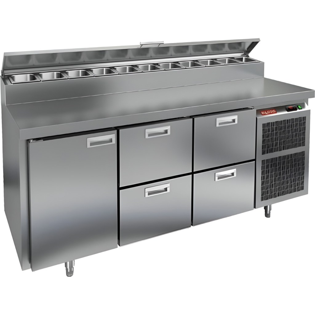 Каталог оборудования Холодильное оборудованиеСтолы охлаждаемыеСтолы холодильные для пиццыСтол холодильный для пиццы HiCold PZ2-122GN (1/6) Стол холодильный для пиццы HiCold PZ2-122GN (1/6) Код товара: 064-756 Поделиться: WhatsAppTelegram СравнитьДобавить в КПВ избранное 0 275 572 ₽ В корзину 0 шт Под заказСамовывоз сегодня бесплатно Взять в кредит Купить в лизинг Получить консультацию в WhatsApp Описание Характеристики Отзывы 0 Стол холодильный для пиццы HiCold PZ2-122GN (1/6) предназначен для кухонь и предприятий общественного питания. Он используется для раскатки теста, подготовки ингредиентов для пиццы, салатов и других блюд, а также для охлаждения и кратковременного хранения скоропортящихся продуктов. Модель совмещает нержавеющую рабочую поверхность и охлаждаемый отсек с 1 дверью и 4 ящиками, обеспечивая удобный доступ к ингредиентам и эффективное хранение. Особенности: Динамическая система охлаждения для равномерного поддержания температуры Автоматическая оттайка для удобного обслуживания Электронная панель управления для точной настройки параметров Вместительная внутренняя полка формата GN 1/1 (размер 530×325 мм) 1 дверь и 4 вместительных ящика для хранения ингредиентов Автоматические доводчики дверей с фиксатором открытого положения Легкозаменяемые магнитные уплотнители для герметичности Открытая агрегатная часть для легкого доступа к компонентам Регулируемые по высоте ножки для устойчивости Нержавеющая столешница глубиной 486 мм и толщиной 50 мм — устойчива к коррозии, легко моется и гигиенична Толщина теплоизоляции: 50 мм Максимальная глубина гастроемкостей: 100 мм Вместимость салат-бара: 11 гастроемкости Стол холодильный HiCold PZ2-122GN (1/6) — это надежный и функциональный стол для пиццы. Он объединяет рабочую поверхность и охлаждаемый отсек, упрощает хранение и подготовку ингредиентов, обеспечивает удобство работы повара и соответствует стандартам профессиональной кухни. Изображение товара, представленного на фото, может отличаться от его фактического вида. Показать все Габаритные размеры1835×700×1000 ммДиапазон рабочей температурыот +2 до +10 °CРасположение агрегатаБоковое Материал столешницыНержавеющая Тип столаС дверьми и ящиками Тип двериГлухая Объём350 лТип гастроемкостейGN 1/6 Количество дверей1 штКоличество ящиков4 штРазмер полки530×325 ммНапряжение220 ВМощность0,5 кВтТип охлажденияДинамическое Тип оттайкиАвтоматическая Габариты в упаковке2000×850×1140 ммВес нетто172 кгВес брутто210 кгБрендHicoldВсе холодильные столы для пиццы HicoldВсе нержавеющие холодильные столы для пиццы Оставить отзыв Еще никто не оставил отзыв на этот товар Ранее просмотрено Под заказ 260 272 ₽ Стол холодильный для пиццы HiCold PZ2-113GN (1/6)