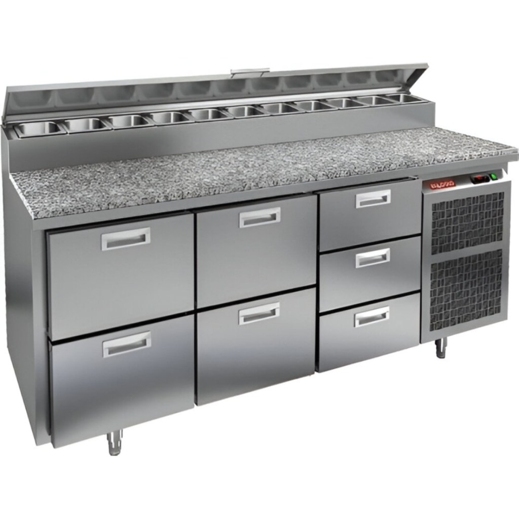 Каталог оборудования Холодильное оборудованиеСтолы охлаждаемыеСтолы холодильные для пиццыСтол холодильный для пиццы HiCold PZ2-223GN (1/6) камень Стол холодильный для пиццы HiCold PZ2-223GN (1/6) камень Код товара: 064-772 Поделиться: WhatsAppTelegram СравнитьДобавить в КПВ избранное 0 353 962 ₽ В корзину 0 шт Под заказСамовывоз сегодня бесплатно Взять в кредит Купить в лизинг Получить консультацию в WhatsApp Описание Характеристики Отзывы 0 Стол холодильный для пиццы HiCold PZ2-223GN (1/6) камень предназначен для профессиональных кухонь и предприятий общественного питания. Он используется для раскатки теста, подготовки ингредиентов для пиццы, салатов и других блюд, а также для охлаждения и кратковременного хранения скоропортящихся продуктов. Модель совмещает гранитную рабочую поверхность и охлаждаемый отсек с 7 выдвижными ящиками, что обеспечивает максимальное удобство доступа к ингредиентам и эффективное распределение хранения. Особенности: Динамическая система охлаждения для равномерного поддержания температуры Автоматическая оттайка для удобного обслуживания Электронная панель управления для точной настройки параметров Вместительная внутренняя полка формата GN 1/1 (размер 530×325 мм) 7 выдвижных ящиков для хранения ингредиентов Легкозаменяемые магнитные уплотнители для герметичности Открытая агрегатная часть для легкого доступа к компонентам Регулируемые по высоте ножки для устойчивости Гранитная столешница глубиной 486 мм и толщиной 50 мм — устойчива к повреждениям, легко моется и гигиенична Толщина теплоизоляции: 50 мм Максимальная глубина гастроемкостей: 100 мм Вместимость салат-бара: 11 гастроемкости Стол холодильный HiCold PZ2-223GN (1/6) камень— это профессиональное решение для кухонь с высоким потоком заказов. Он сочетает прочность, функциональность и удобство, обеспечивая идеальные условия для хранения и подготовки ингредиентов.Изображение товара, представленного на фото, может отличаться от его фактического вида. Показать все Габаритные размеры1835×700×1000 ммДиапазон рабочей температурыот +2 до +10 °CРасположение агрегатаБоковое Материал столешницыГранитная Тип столаС ящиками Объём505 лТип гастроемкостейGN 1/6 Количество ящиков7 штРазмер полки530×325 ммНапряжение220 ВМощность0,5 кВтТип охлажденияДинамическое Тип оттайкиАвтоматическая Габариты в упаковке2000×850×1140 ммВес нетто172 кгВес брутто248 кгБрендHicoldВсе холодильные столы для пиццы Hicold Оставить отзыв Еще никто не оставил отзыв на этот товар Ранее просмотрено Под заказ 243 000 ₽ Горка холодильная Ангара ГХ 900 - 2,5 (без боковин)