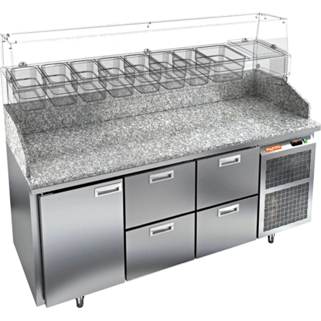 Каталог оборудования Холодильное оборудованиеСтолы охлаждаемыеСтолы холодильные для пиццыСтол холодильный для пиццы HiCold PZ3-122/GN камень Стол холодильный для пиццы HiCold PZ3-122/GN камень Код товара: 065-008 Поделиться: WhatsAppTelegram СравнитьДобавить в КПВ избранное 0 327 952 ₽ В корзину 0 шт Под заказСамовывоз сегодня бесплатно Взять в кредит Купить в лизинг Получить консультацию в WhatsApp Описание Характеристики Отзывы 0 Стол холодильный для пиццы HiCold PZE3-122/GN камень предназначен для использования в пиццериях, кафе, магазинах и ресторанах. Он идеально подходит для раскатки теста, подготовки ингредиентов и кратковременного хранения скоропортящихся продуктов. Витрина приобретается отдельно. Стол сочетает корпус из нержавеющей стали и гранитную столешницу, которая устойчива к механическим и температурным нагрузкам и удобна в работе с тестом. Такая конструкция обеспечивает долговечность, гигиеничность и простоту ухода. Особенности модели: Охлаждение: динамическое — равномерное поддержание температуры Оттайка: автоматическая — удобство и экономия времени Панель управления: электронная — точная настройка температуры Ножки: регулируемые по высоте — устойчивость на неровной поверхности Двери: 1 глухая дверца с автоматическими доводчиками и фиксатором открытого положения Ящики: 4 выдвижных ящика — удобное хранение ингредиентов Уплотнители: легкозаменяемые магнитные — герметичность и простота обслуживания Толщина теплоизоляции: 50 мм — сохранение холода и энергоэффективность Рабочая поверхность: глубина 680 мм — удобство работы HiCold PZE3-122/GN камень— это надёжный и функциональный холодильный стол для пиццы, который сочетает прочность, эргономику и эффективное охлаждение. Благодаря гранитной столешнице, корпусу из нержавеющей стали, двум глухим дверям и двум выдвижным ящикам он станет универсальным решением для профессиональной кухни. Изображение товара, представленного на фото, может отличаться от его фактического вида. Показать все Габаритные размеры1835×700×1050 ммДиапазон рабочей температурыот +2 до +10 °CРасположение агрегатаБоковое Материал столешницыГранитная Тип столаС дверьми и ящиками Тип двериГлухая Объём505 лКоличество дверей1 штКоличество ящиков4 штРазмер полки530×325 ммНапряжение220 ВМощность0,5 кВтТип охлажденияДинамическое Тип оттайкиАвтоматическая Габариты в упаковке2000×850×1180 ммВес нетто172 кгВес брутто192 кгБрендHicoldВсе холодильные столы для пиццы HicoldВсе нержавеющие холодильные столы для пиццы Оставить отзыв Еще никто не оставил отзыв на этот товар Ранее просмотрено Под заказ 224 181 ₽ Стол холодильный для пиццы HiCold PZ2-111GN (1/6) стекло Под заказ 257 662 ₽ Стол холодильный для пиццы HiCold PZ2-1111GN (1/6) З