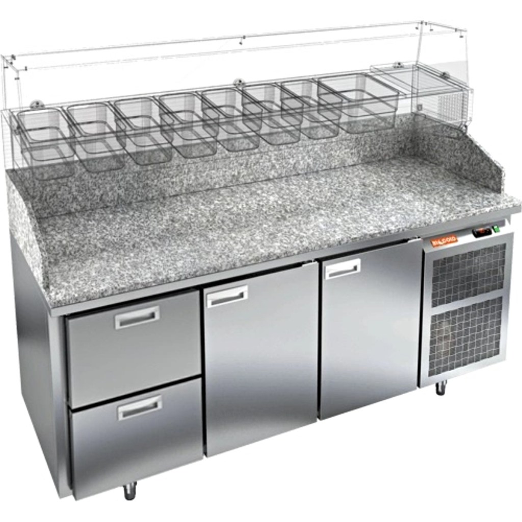 Каталог оборудования Холодильное оборудованиеСтолы охлаждаемыеСтолы холодильные для пиццыСтол холодильный для пиццы HiCold PZ3-211/GN камень Стол холодильный для пиццы HiCold PZ3-211/GN камень Код товара: 065-010 Поделиться: WhatsAppTelegram СравнитьДобавить в КПВ избранное 0 297 352 ₽ В корзину 0 шт Под заказСамовывоз сегодня бесплатно Взять в кредит Купить в лизинг Получить консультацию в WhatsApp Описание Характеристики Отзывы 0 Стол холодильный для пиццы HiCold PZE3-211/GN камень предназначен для использования в пиццериях, кафе, магазинах и ресторанах. Он идеально подходит для раскатки теста, подготовки ингредиентов и кратковременного хранения скоропортящихся продуктов. Витрина приобретается отдельно. Стол сочетает корпус из нержавеющей стали и гранитную столешницу, которая устойчива к механическим и температурным нагрузкам и удобна в работе с тестом. Такая конструкция обеспечивает долговечность, гигиеничность и простоту ухода. Особенности модели: Охлаждение: динамическое — равномерное поддержание температуры Оттайка: автоматическая — удобство и экономия времени Панель управления: электронная — точная настройка температуры Ножки: регулируемые по высоте — устойчивость на неровной поверхности Двери: 2 глухие двери с автоматическими доводчиками и фиксатором открытого положения Ящики: 2 выдвижных ящика — удобное хранение ингредиентов Уплотнители: легкозаменяемые магнитные — герметичность и простота обслуживания Толщина теплоизоляции: 50 мм — сохранение холода и энергоэффективность Рабочая поверхность: глубина 680 мм — удобство работы HiCold PZE3-211/GN камень— это надёжный и функциональный холодильный стол для пиццы, который сочетает прочность, эргономику и эффективное охлаждение. Благодаря гранитной столешнице, корпусу из нержавеющей стали, двум глухим дверям и двум выдвижным ящикам он станет универсальным решением для профессиональной кухни. Изображение товара, представленного на фото, может отличаться от его фактического вида. Показать все Габаритные размеры1835×700×1050 ммДиапазон рабочей температурыот +2 до +10 °CРасположение агрегатаБоковое Материал столешницыГранитная Тип столаС дверьми и ящиками Тип двериГлухая Объём505 лКоличество дверей2 штКоличество ящиков2 штРазмер полки530×325 ммНапряжение220 ВМощность0,5 кВтТип охлажденияДинамическое Тип оттайкиАвтоматическая Габариты в упаковке2000×850×1180 ммВес нетто172 кгВес брутто192 кгБрендHicoldВсе холодильные столы для пиццы HicoldВсе нержавеющие холодильные столы для пиццы Оставить отзыв Еще никто не оставил отзыв на этот товар Ранее просмотрено Под заказ 268 552 ₽ Стол холодильный для пиццы HiCold PZ3-13/GN камень Под заказ 224 181 ₽ Стол холодильный для пиццы HiCold PZ2-111GN (1/6) стекло Под заказ 257 662 ₽ Стол холодильный для пиццы HiCold PZ2-1111GN (1/6) З