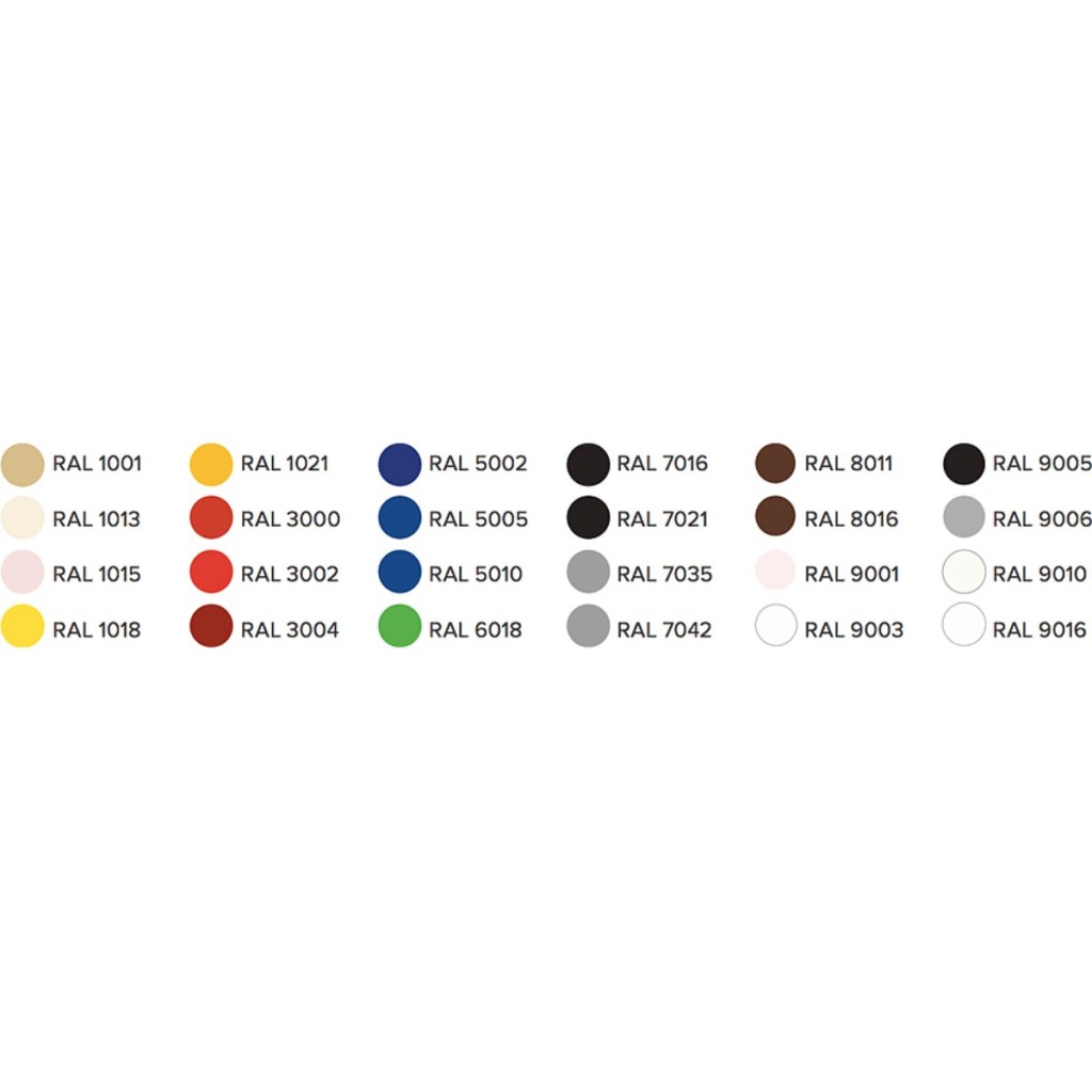 Доступно в 13 стандартных цветах по палитре RAL.