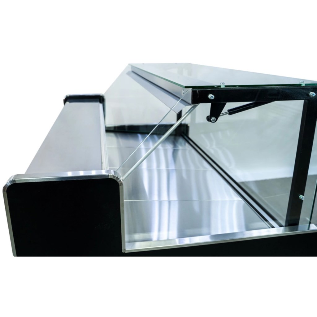 Каталог оборудования Холодильное оборудованиеВитрины холодильныеВитрины холодильные среднетемпературные от 0 до +5 °СВитрина холодильная Ангара 2 КУБ 2,0 динамика Витрина холодильная Ангара 2 КУБ 2,0 динамика Код товара: 066-471 Поделиться: WhatsAppTelegram СравнитьДобавить в КПВ избранное 0 97 900 ₽ В корзину 0 шт В наличииСамовывоз сегодня бесплатно Взять в кредит Купить в лизинг Получить консультацию в WhatsApp Описание Характеристики Отзывы 0 Витрина холодильная Ангара 2 КУБ 2,0 динамика предназначена для демонстрации и кратковременного хранения пищевых продуктов. Обеспечивает поддержание заданной температуры предварительно охлаждённых продуктов и органично вписывается в оформление любого торгового зала или открытой площадки. Особенности: Динамическое охлаждение с равномерным распределением воздушных потоков по всей камере Встроенный компрессорный холодильный агрегат Embraco Aspera или Secop (Danfoss) Надёжный микродвигатель EBM-PAPST Прямое лобовое стекло и боковые стекла толщиной 6 мм, ударопрочные Материалы: поверхность выкладки – нержавеющая сталь, подтоварники – оцинкованная сталь с полимерным покрытием, столешницы – нержавеющая сталь Два вместительных подтоварника для хранения продукции Автоматическое оттаивание испарителя с отводом талой воды в ёмкость в агрегатном отсеке Электронное управление температурой через блок Elitech ETC-974 (2 датчика, усиленное реле) Светодиодное LED-освещение – яркое, энергосберегающее, с низким тепловыделением, включается кнопкой на панели управления Автомат IEK для надёжного включения/выключения витрины Ровное расположение витрины благодаря регулируемым опорам, правильный сбор конденсата и бесшумная работа Равномерное распределение температуры по объёму камеры без образования льда и инея Хладагент – экологичный и нетоксичный R-134a, R-404a Испаритель SEST LUVE от итальянского производителя Комплектация: 2 подтоварника / электронный блок управления Температура окружающей среды: +12…+35 °C Ангара 2 КУБ 2,0 – надёжная и вместительная витрина для демонстрации и хранения предварительно охлаждённых продуктов. Отличается равномерным охлаждением, ярким LED-освещением, автоматическим оттаиванием и прочными материалами, что делает её идеальным решением для больших торговых залов и открытых площадок.Изображение товара, представленного на фото, может отличаться от его фактического вида. Показать все Габаритные размеры2020×980×1260 ммДиапазон рабочей температурыот 0 до +5 °CПлощадь выкладки1,27 м²Длина2020 ммГлубина980 ммВысота1260 ммНоминальная мощность300 ВтРазмер выкладки654 ммПолезный объем290 лХолодообеспечениеВстроенное Тип охлажденияДинамическое Тип оттайкиАвтоматическая Температура эксплуатацииот +12 до +35 °CПодсветкаЕсть ХладагентR134a, R404a Напряжение220 ВРасход электроэнергии в сутки7,2 кВт/сутГабариты в упаковке2300×1350×1200 ммОбъём (брутто)3,73 м³Вес нетто200 кгВес брутто300 кгБрендАнгараВсе витрины холодильные среднетемпературные от 0 до +5 °С 2,0 м Оставить отзыв Еще никто не оставил отзыв на этот товар Ранее просмотрено В наличии 79 700 ₽ Витрина холодильная Ангара 1 КУБ 1,0 динамика