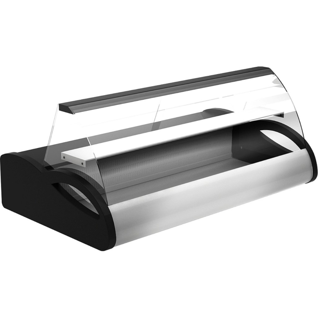 Модель выполнена в настольном исполнении и оснащена гнутым передним стеклом, неохлаждаемой верхней полкой, а также ночными шторками из органического стекла для защиты продукции в нерабочее время. Корпус изготовлен из стали с ППУ-теплоизоляцией, рабочие поверхности — из нержавеющей стали, а боковины — из прочного чёрного пластика.